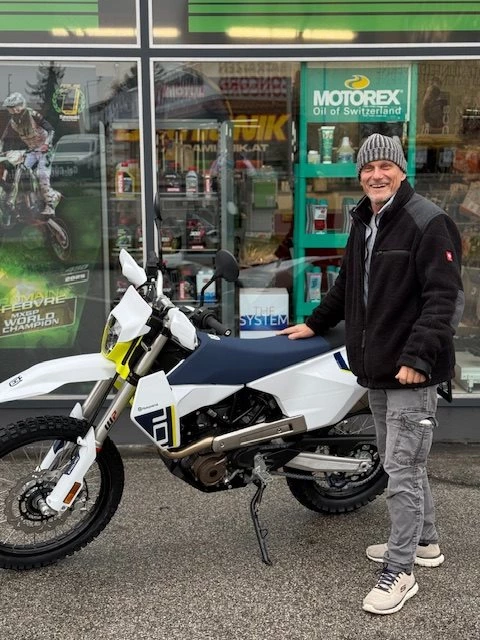 Herbert und seine neue Husqvarna 701 Enduro der Modellreihe 2026 sind einsatzbereit für längere Reisen auf der Straße, auf Schotterpisten oder für Fahrten im rauen Gelände. Wir wünschen mit der neuen Allrounderin viel Spaß egal ob im Großstadtdschungel, auf den schönsten Passstraßen im In- und Ausland oder auf anspruchsvollen TET-Passagen.